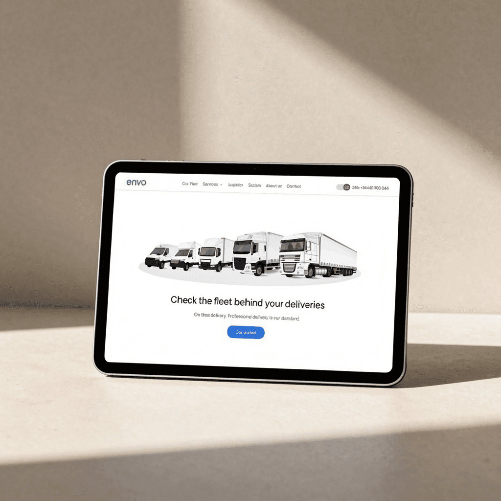 Envo.es is a fictional transport company focused on dedicated delivery services for businesses. The brand concept was developed to represent a reliable and modern logistics provider built around punctuality, communication, and operational consistency.