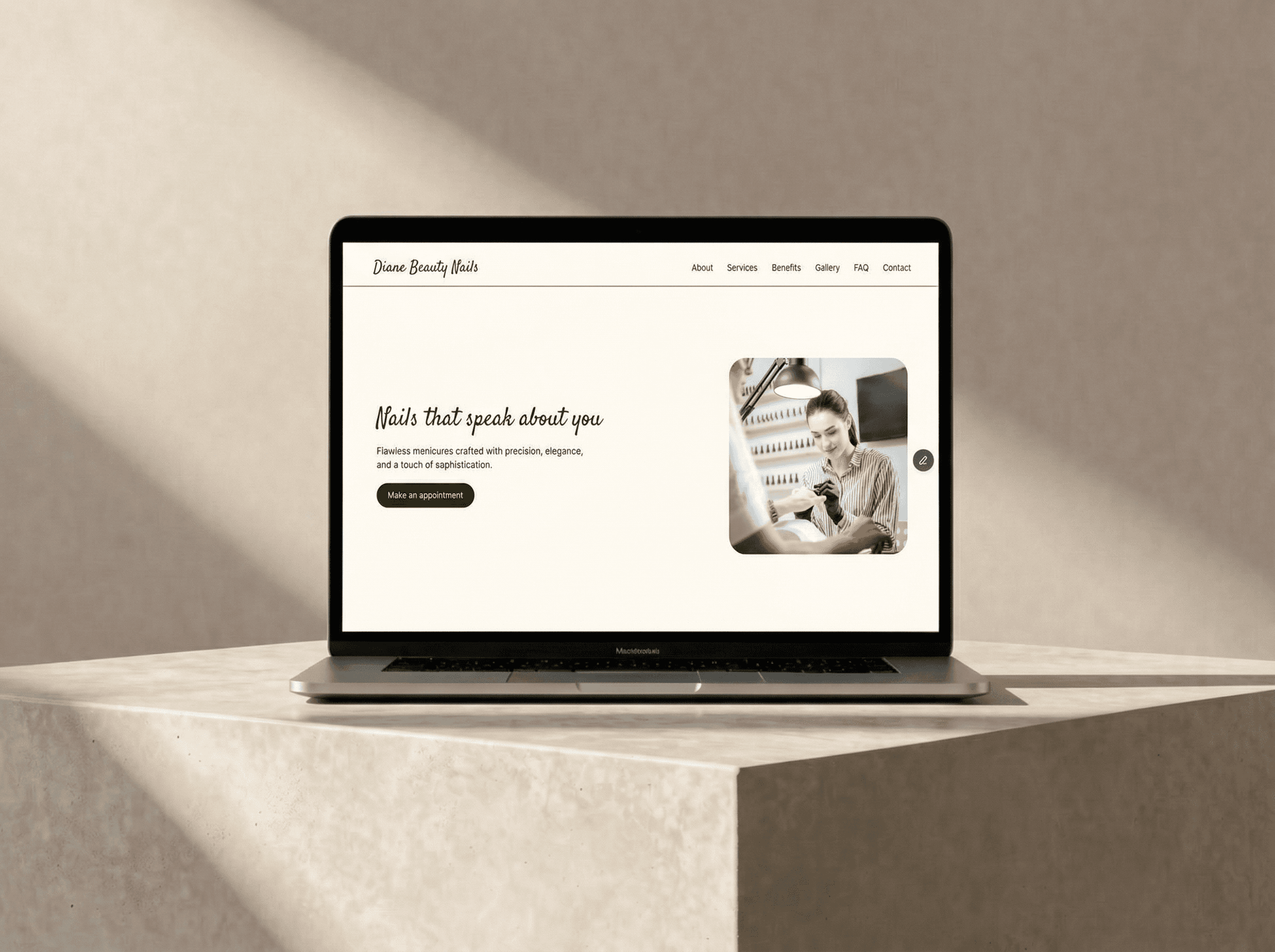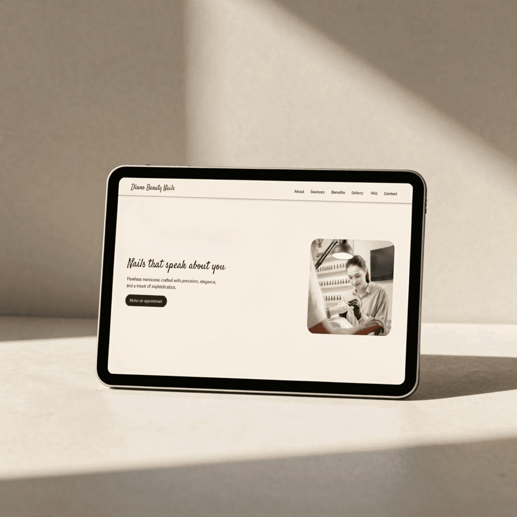 The final result is a clean and elegant website that clearly presents the services, highlights the quality of the work through a visual gallery, and makes it easy for clients to book an appointment.
